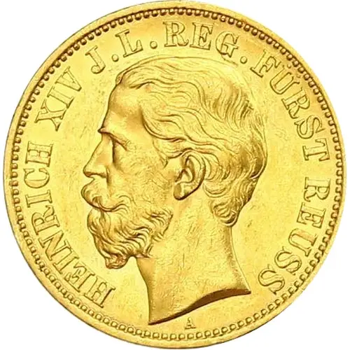 Artistry: The obverse presents a dignified, realistic portrait of Prince Henry XIV, typical of late 19th-century Neo-classical European portraiture. While the engraver is often undocumented for minor state issues, the quality suggests a skilled artisan, likely from a prominent German mint. The reverse consistently features the majestic imperial eagle of the German Empire, crowned and clutching a shield, encircled by "DEUTSCHES REICH" and the "20 MARK" denomination. This standardized reverse visually reinforced the coin's imperial affiliation.