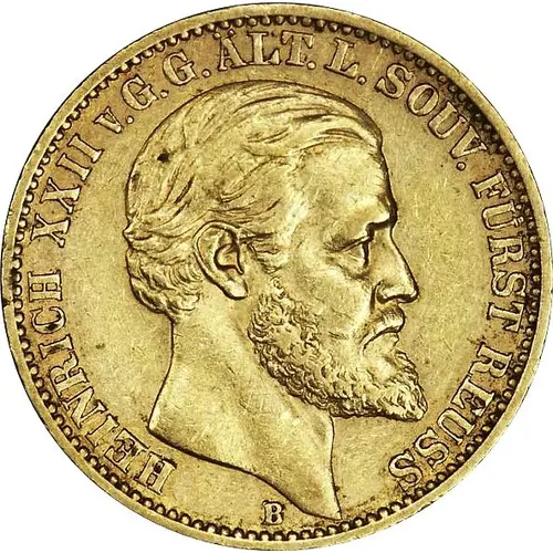| Obverse lettering | HEINRICH XXII V.G.G.ÄLT.L.SOUV.FÜRST REUSS B |