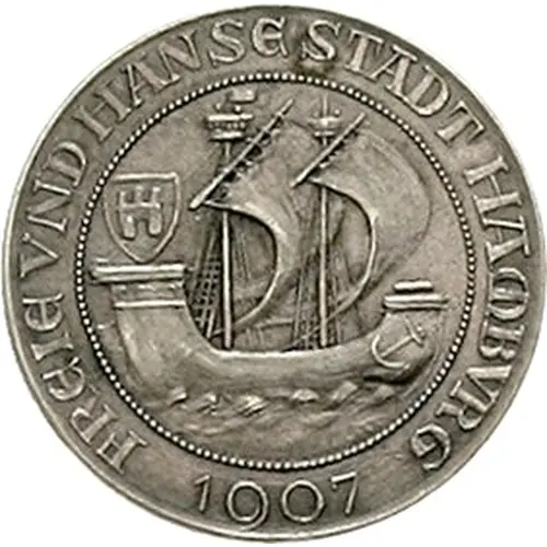 FREIE VND HANSESTADT HAMBVRG 1907 (Translation: Free and Hanseatic city Hamburg) |