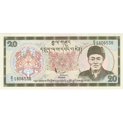 | Reverse lettering | ROYAL MONETARY AUTHORITY OF BHUTAN TWENTY NGULTRUM |