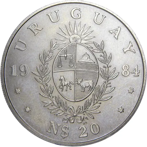 Hake with stylized water background. Hake (Merluccius hubbsi) is the most important specie for Argentina and Uruguay fisheries. This coin was minted to adhere to FAO Numismatic Program. Is part of the World Fisheries Conference set. |