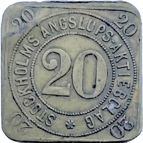 | Obverse lettering | STOCKHOLMS ÅNGSLUPS AKTIEBOLAG 20 (20 in 4 corners) |