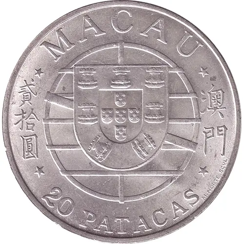 Obverse lettering * MACAU * * 20 PATACAS * M.NORTE. SCVL