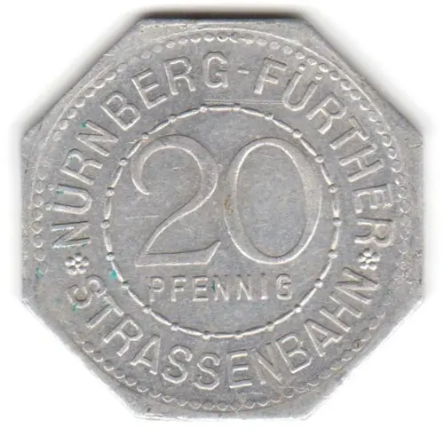 NÜRNBERG-FÜRTHER 20 PFENNIG STRASSENBAHN (Translation: Nuremberg to Furth 20 Pfennig Streetcar Railway) |
