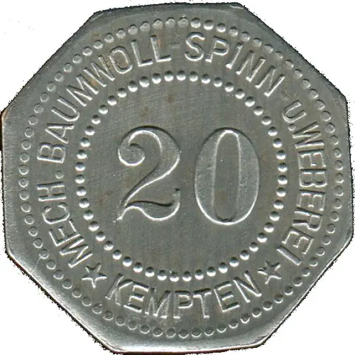 | 表面の銘文 | MECH. BAUMWOLL-SPINN-u.WEBEREI 20 ★ KEMPTEN ★ |