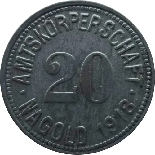 | Obverse lettering | AMTSKÖRPERSCHAFT 20 ● NAGOLD 1918 ● |