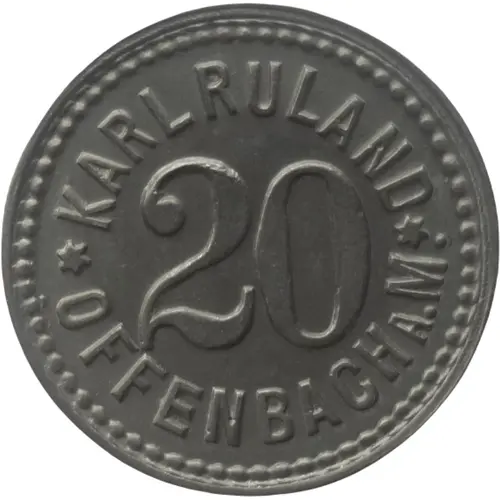 | Obverse lettering | KARL RULAND 20 ✶ OFFENBACH A.M. ✶ |