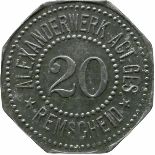 | Obverse lettering | ALEXANDERWERK ACT.- GES. 20 ★ REMSCHEID ★ |