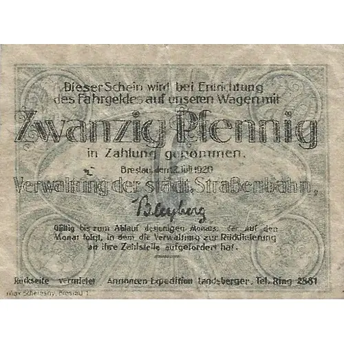 | Đơn vị phát hành | City of Breslau (Lower Silesia) (Prussian province of Lower Silesia) |