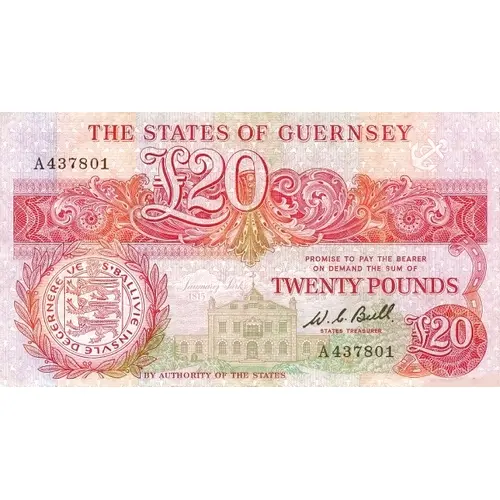 The States of Guernsey Promise to pay the bearer on demand the sum of Twenty Pounds By authority of the States |