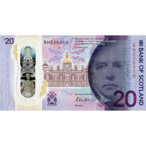Bank of Scotland plc promises to pay the Bearer on demand twenty pounds sterling at its registered office, Edinburgh By order of the Board |
