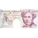 Black, teal-violet and purple on multicolor underprint. HM Queen Elizabeth II at right, `£20` at upper left and upper right corners, Britannia at left. Segmented vertical foil strip and purple optical device at left centre. Serial # olive-green to maroon at upper left. Note: two `£20` denomination on each face. |