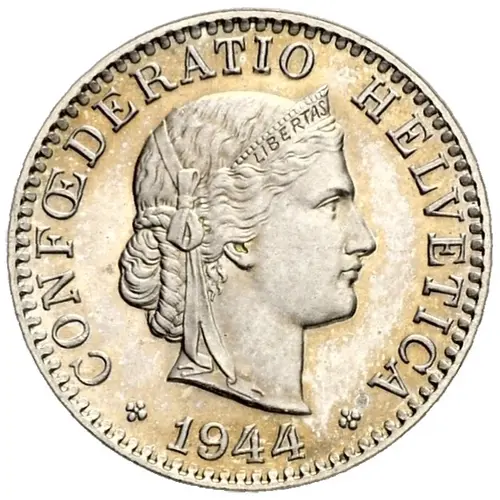| Obverse lettering | CONFŒDERATIO HELVETICA LIBERTAS ⸭ 1944 ⸭ (Translation: Swiss Confederation) |