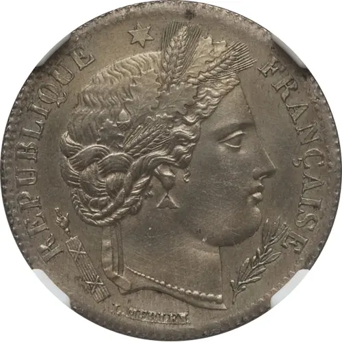 | Obverse lettering | REPUBLIQUE - FRANÇAISE L. MERLEY (Translation: French Republic.) |