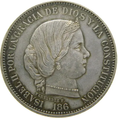 ISABEL II POR LA GRACIA DE DIOS Y LA CONSTITUCION FERNANDEZ F . 186 (Translation: Isabel II by the grace of God and the Constitution) |