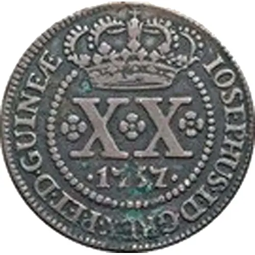 | Obverse lettering | IOSEPHUS·I·D·G·REX·P·ET·D·GUINEAE· XX · 1757 · (Translation: José I, by the Grace of God, King of Portugal and Lord of Guinea.) |