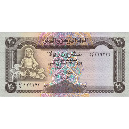 Arka yüz lejandı Central Bank of Yemen Twenty Rials
