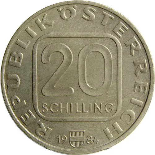 | نوشتههای روی سکه | REPUBLIK ÖSTERREICH 20 SCHILLING 19 84 (Translation: REPUBLIC OF AUSTRIA) |