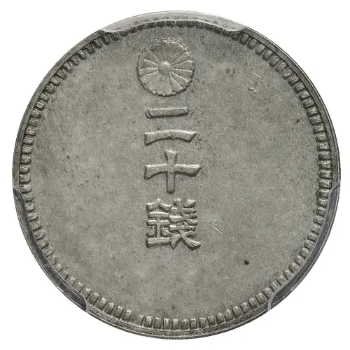 Historical Context: This 20 Sen Pattern coin emerges from the pivotal Meiji Restoration period (1868-1912) in Japan, an era defined by Emperor Meiji's rapid modernization and Westernization. The adoption of a decimal currency system, replacing the complex Edo-period coinage, was a cornerstone of these reforms. This pattern piece represents an experimental phase in the establishment of the yen/sen/rin system, demonstrating the Mint's trials with specific denominations and alloys, such as billon, before finalizing the circulating coinage. Its existence underscores the significant effort to create a standardized, modern currency for a newly unified and internationally engaged Japan.
