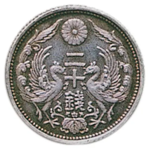 Technical/Grading: As a pattern, this silver 20 Sen piece (4.50 gg) exhibits exceptional, often proof-like, strike quality, reflecting its trial or presentation purpose. Key high-points include intricate Imperial crest details, sharp Japanese characters, and pristine fields. The uniface strike means one side is intentionally blank, a critical technical characteristic. Its rarity and precision contribute significantly to its numismatic value, often showing full detail on the struck side.
