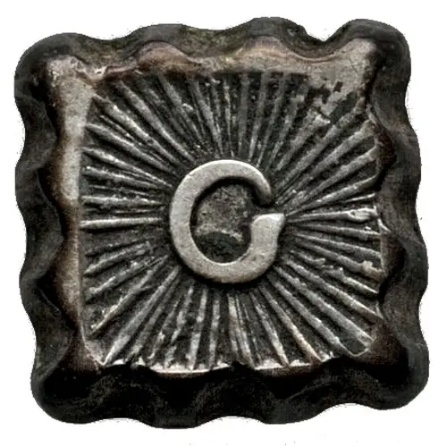 | Ön yüz açıklaması | Radiant G Countermark on center plug of Spanish or Spanish Colonial 8 Reales. |
