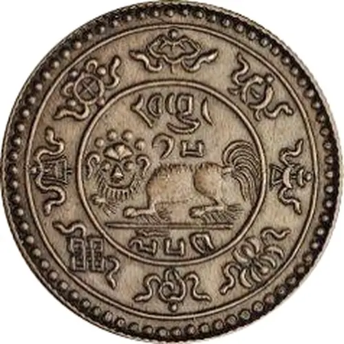 | Obverse description | Lion facing left with Tibetan characters above and below, all surrounded by the Buddhist Eight Auspicious symbols (a white parasol, a conch shell, a treasure vase, a victory banner, a dharma wheel, a pair of golden fish, an endless knot, and a lotus flower). |