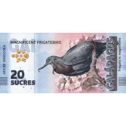 Galápagos Islands DARWIN`S ARCH 20 SUCRES CHARLES DARWIN 1809-1882 THIS NOTE IS NOT LEGAL TENDER, BUT A UNIQUE COLLECTOR`S ITEM AND A TRIBUTE TO THE BIODIVERSITY OF THE GALÁPAGOS ISLANDS. |