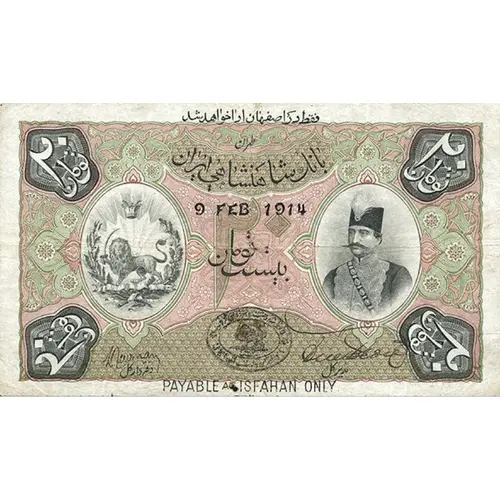 | Rückseitenlegende | THE IMPERIAL BANK OF PERSIA TWENTY TOMANS |