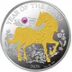 The arms of Vanuatu featuring a Melanesian warrior standing in front of a curved boar`s tooth above a scroll reading `LONG GOD YUMI STANAP`, surrounded by Chinese zodiac animals at centre, with value above and country name below |