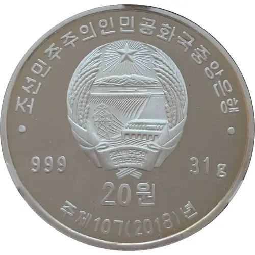 | Obverse lettering | 조선민주주의인민공화국중앙은행 20 원 주체107 (2018) 년 (Translation: Central Bank of the Democratic People`s Republic of Korea, Juche 107, Year 2018) |