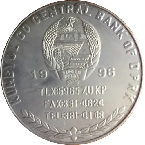 | Opis líce | KUMBYOL CO CENTRAL BANK OF DPRK 1996 TLX:5965 ZUKP FAX:3 81-4624 TEL:3 81-4148 |
