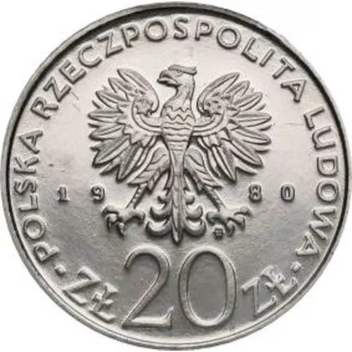 | Obverse lettering | POLSKA RZECZPOSPOLITA LUDOWA 19 80 mw • ZŁ 20 ZŁ • |