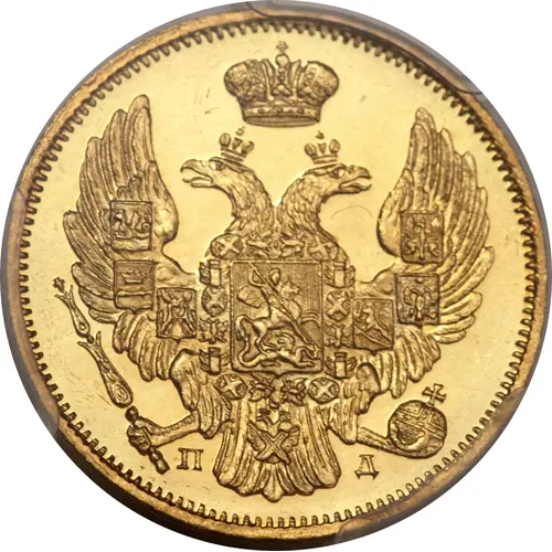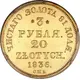 | Reverse lettering | ЧИСТАГО ЗОЛОТА 81 ДОЛЯ. 3 РУБЛЯ 20 ZŁOTYCH 1836 С.П.Б. |