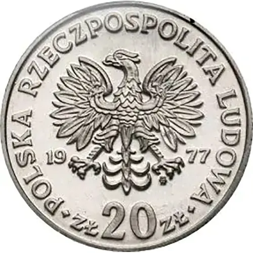 | Obverse lettering | POLSKA RZECZPOSPOLITA LUDOWA 19 77 mw • ZŁ 20 ZŁ • |