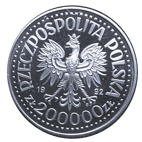 | 正面铭文 | RZECZPOSPOLITA POLSKA 1992 mw ZŁ 200000 ZŁ |