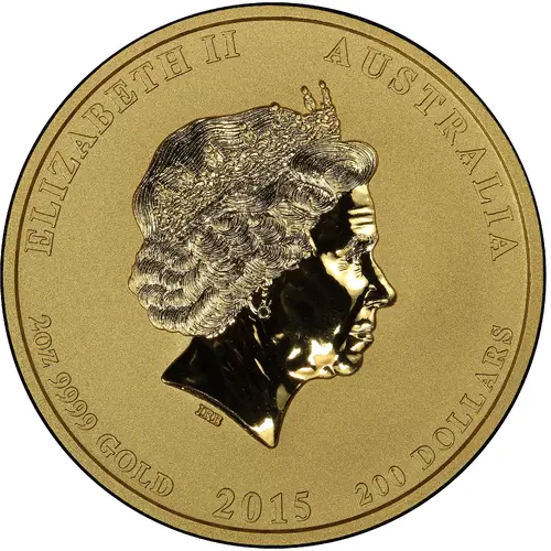 | Obverse lettering | ELIZABETH II AUSTRALIA IRB 2oz 9999 GOLD 2015 200 DOLLARS |
