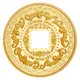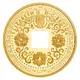 Chinese character `shou` surrounded by 5-bats, represents auspicious `Five Blessings`: health, wealth, longevity, virtue, peaceful death in old age, square hole represents land. |