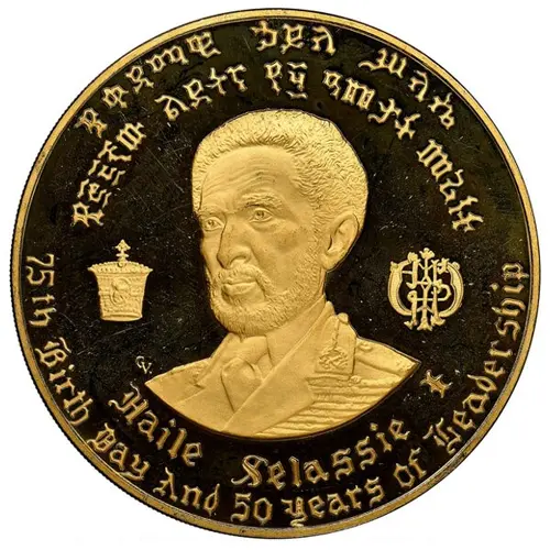 | Obverse lettering | Haile Selassie I 75th Birthday And 50 years of Leadership |