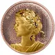 | Reverse description | Pulsating pattern behind Lady Peace, in profile facing left, hair crowned in a wreath of maple leaves and olive branches, flanked by inscription of name and year, below inscription of Canada’s national motto. |