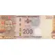 English text; standing lion; head of cattle; two goats; bank seal; straw huts; three standing natives; rock formation; shield and spears. Windowed security thread with demetalized 200 CBE. |