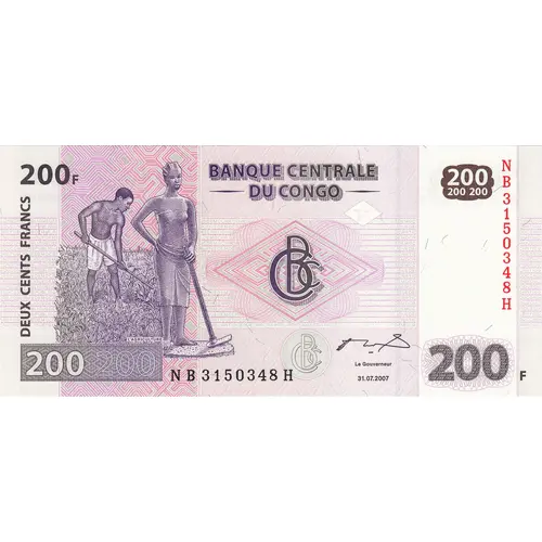 | Obverse lettering | BANQUE CENTRALE DU CONGO DEUX CENTS FRANCS |