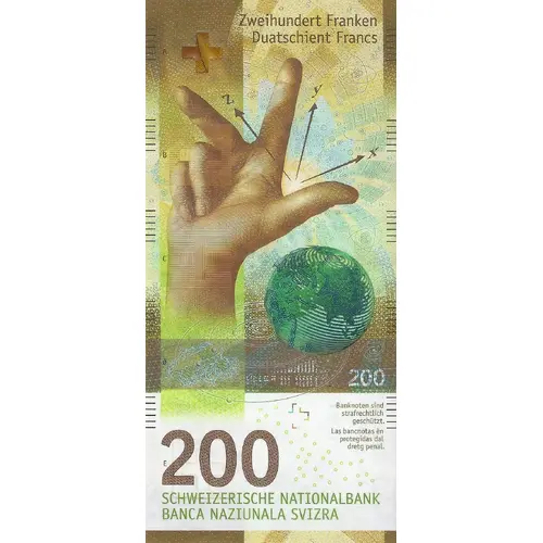 Zweihundert Franken Duatschient Francs 200 Banknoten sind strafrechtlich gezützt. Las bancnotas èn protegias dal dregt penal. E 200 SCHWEIZERISCHE NATIONALBANK BANCA NAZIUNALA SVIZRA |