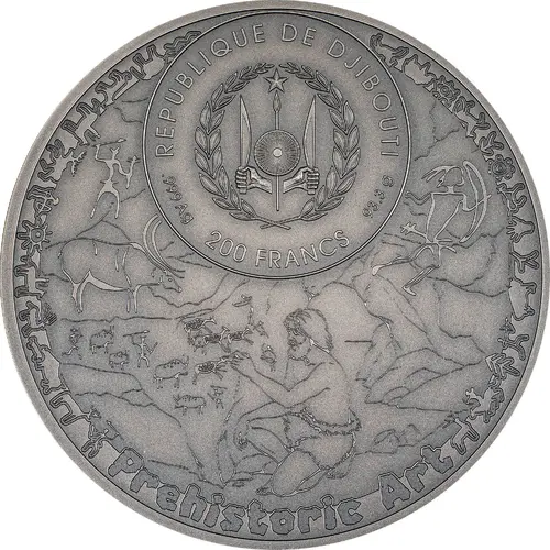 REPUBLIQUE DE DJIBOUTI .999 Ag 200 FRANCS 93.3 g Prehistoric Art (Translation: Republic of Djibouti) |