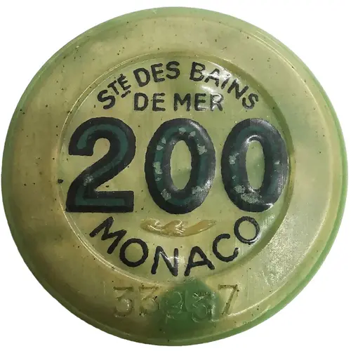 | Obverse lettering | STÉ DES BAINS DE MER 200 MONACO 33937 |