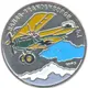 | Reverse description | Plane flying over mountains, legend above. |