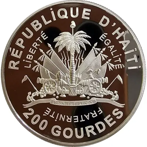 | Opis líce | RÉPUBLIQUE D`HAÏTI LIBERTÉ ÉGALITÉ L`UNION FAIT LA FORCE FRATERNITÉ 200 GOURDES (Translation: Republic of Haiti Liberty Equality Unity is strength Brotherhood) |