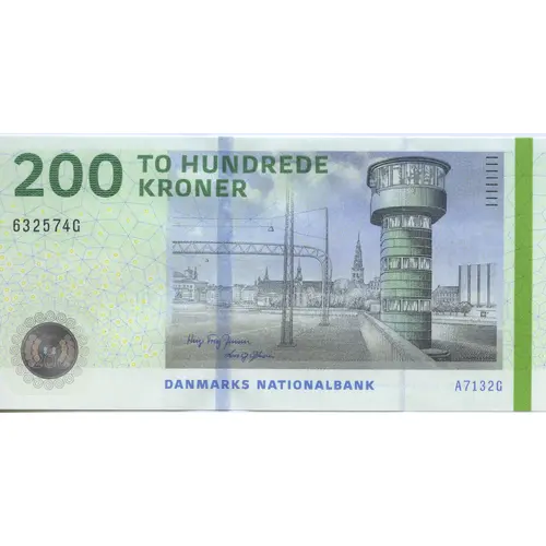 | Obverse lettering | 200 TO HUNDREDE KRONER DANMARKS NATIONALBANK (Translation: Two hundred Kroner Nationalbank of Denmark) |