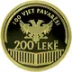 | Opis rubu | 100 VJET PAVARËSI 200 LEKË (Translation: 100 Years of Independence 200 LEKË) |