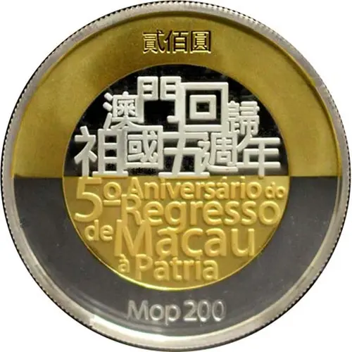 | Obverse lettering | 5º Aniversário do Regresso de Macau à Pátria MOP 200 (Translation: 5th Anniversary Return of Macau to Home Land) |
