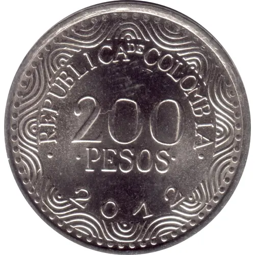 | Obverse lettering | · REPÚBLICA DE COLOMBIA · 200 ·PESOS· 2012 (Translation: Republic of Colombia 200 Pesos) |